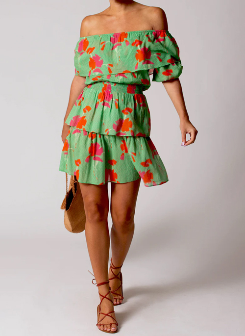 Feel those island vibes. Our new printed gauze Basil is whisper-light, super-packable, and has been updated with a pretty removable sash. Inspired by a retro floral print and in fresh tropical hues, the fluttery tiers are perfect for chasing sunbeams on the beach or twirling on the dance floor. Wear the elastic neckline over the shoulders by day and slip it down for cocktails later.
