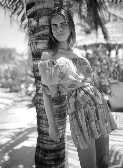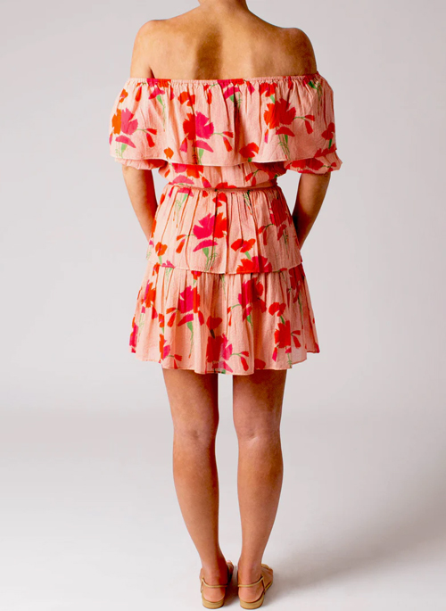 Feel those island vibes. Our new printed gauze Basil is whisper-light, super-packable, and has been updated with a pretty removable sash. Inspired by a retro floral print and in fresh tropical hues, the fluttery tiers are perfect for chasing sunbeams on the beach or twirling on the dance floor. Wear the elastic neckline over the shoulders by day and slip it down for cocktails later.