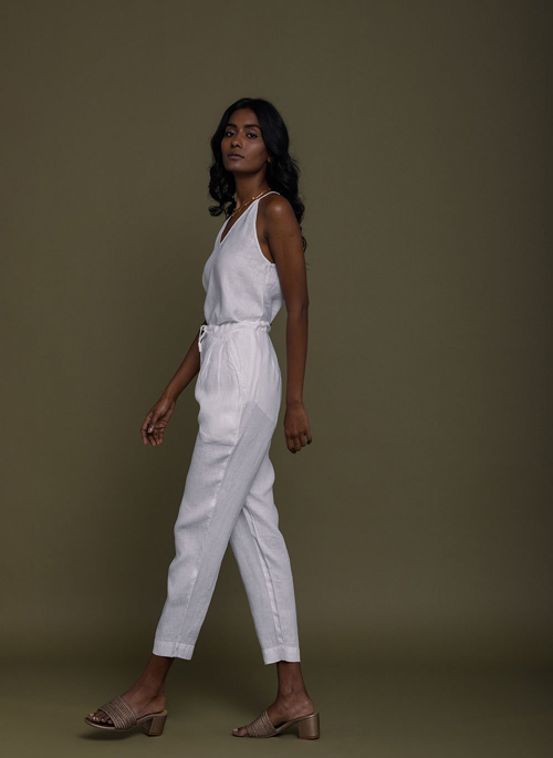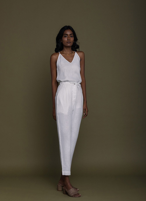 With a drawstring waist and a discrete button fly, these straight-leg tapered pants with a high waist have a relaxed semi-fitted look.