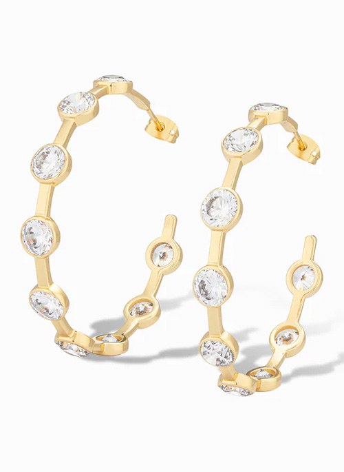 Our best-selling Becky Hoop Earrings are now in cubic zirconia. Wear these lightweight hoop earrings from day-to-night and sparkle away!