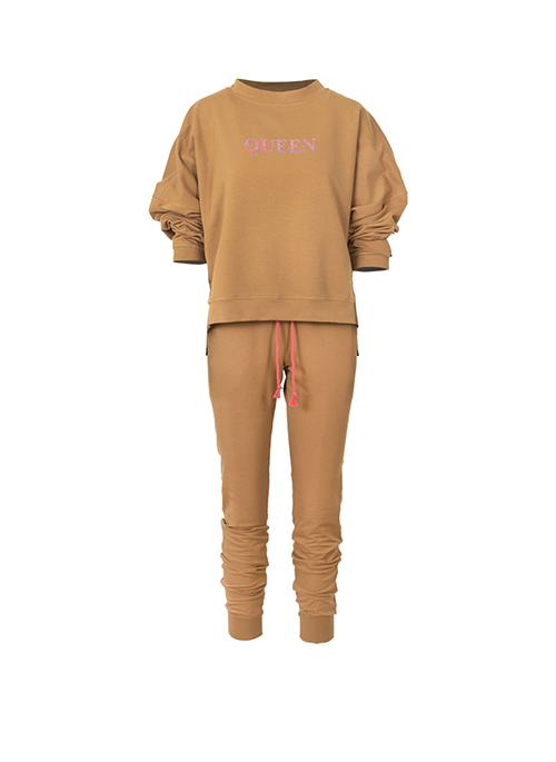Extremely soft and pleasant to the touch tracksuit made of cotton. Embroidered ” Queen ” inscription on the front.
