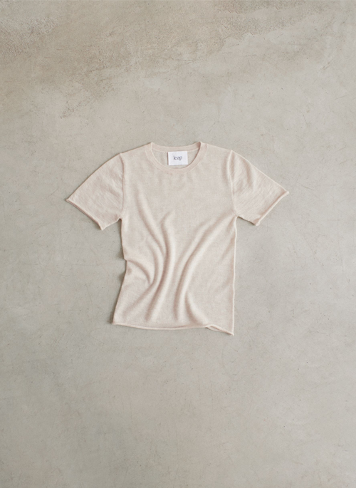 Short sleeve top knitted in impeccable soft extra fine cashmere from Inner Mongolia. Round neck with rolled edges. Fitted across the shoulders. Stretch fit for a second skin feel.