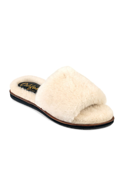 Our 'Bianca' is a genuine shearling slipper on shearling and leather-welted footbed with a soft foam midsole and indoor-outdoor traction rubber outsole.