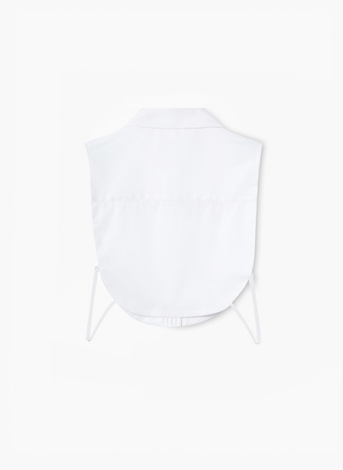Pointed collar two-panel vest, with a front pleated detail, look bib, and adjustable side straps.Details: