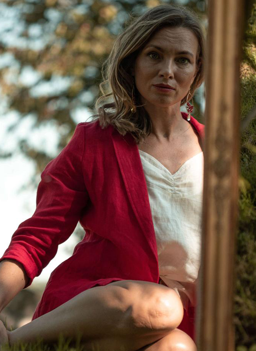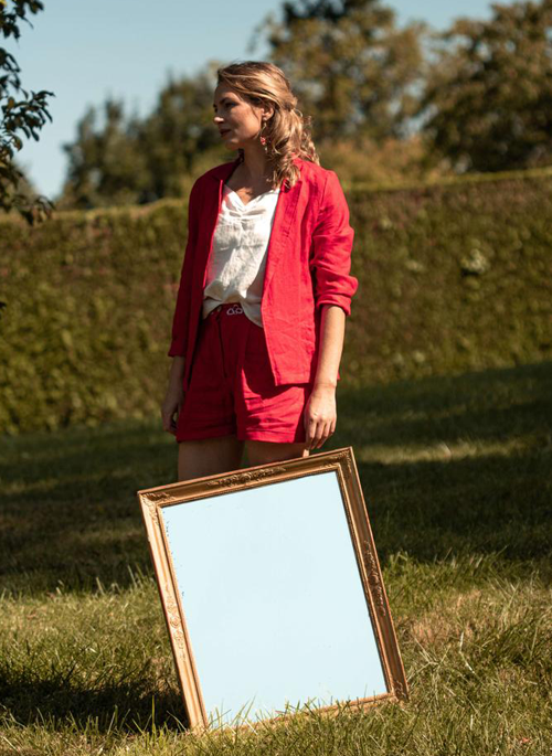 Hips 100-108cm / 39.5 -42.5'- Model in photo is wearing SM. Her normal size is L, this blazer is not oversized on her.