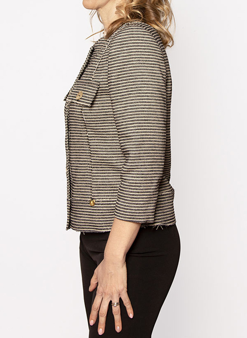 Short Blazer in ORGANIC COTTON in striped Tweed.