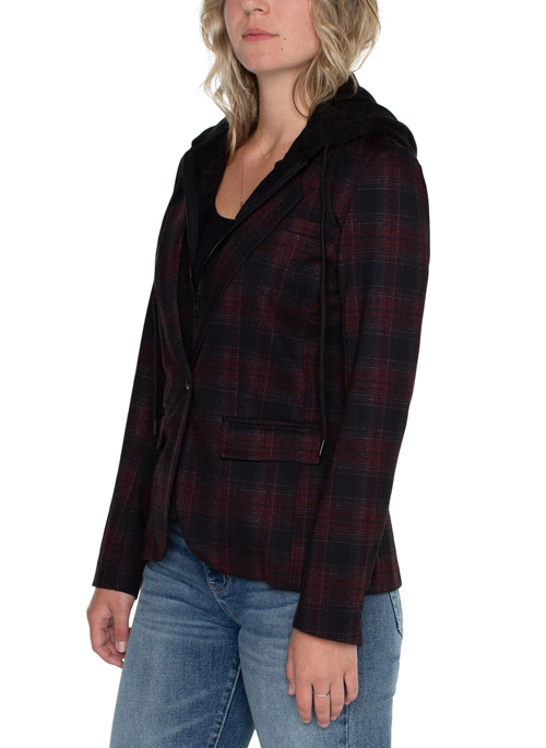 Our signature blazer with removable hood is now available in a beautiful knit plaid. Versatility at its best! Perfect for the woman who keeps it casual or the woman who means business. Make it a set and pair it with the matching Madonna Legging!