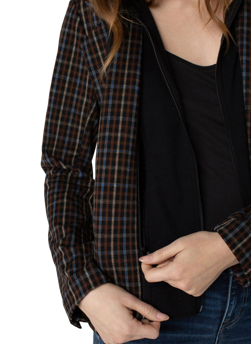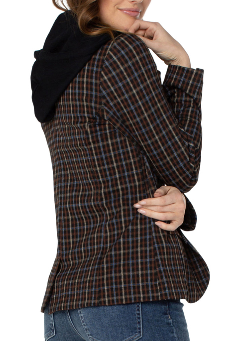 Our signature blazer with removable hood is now available in a beautiful knit tartan plaid. Versatility at its best! Perfect for the woman who keeps it casual or the woman who means business.