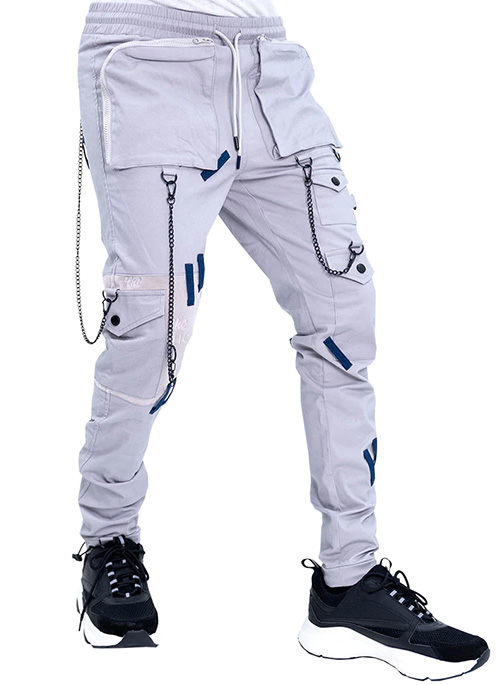 The chains can be clipped to various different rings on the pants, or they can be removed completely.