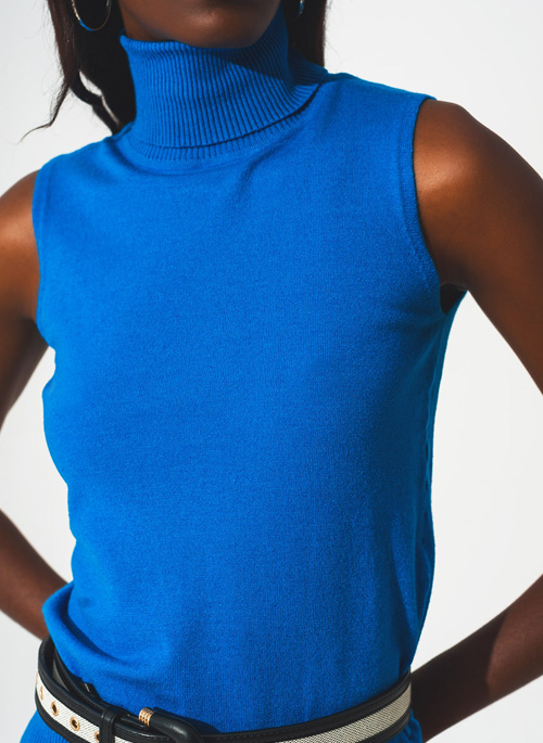 NEW KNITTED TANK JUMPER IN BLUE Details: 51% Viscose 28% Polyester 22% Polyamide. Model is wearing size S. Model is: 32-24-34 Height: 5'11''. Runs true to size. Regular Fit. Style Nº: 5221008.