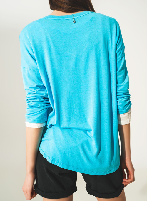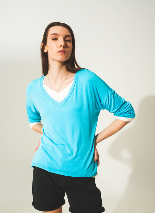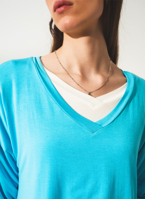 NEW BLUE LONG SLEEVE V NECK TOP IN MODAL