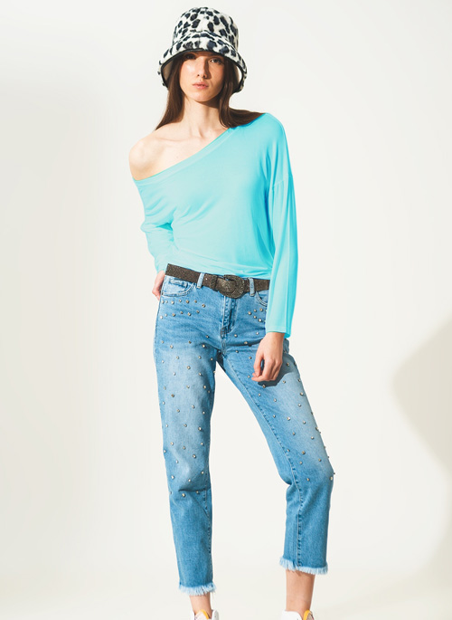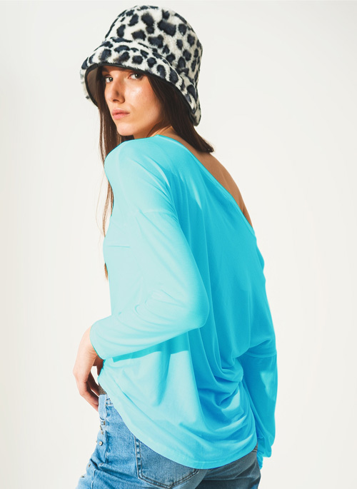 NEW LONG SLEEVE T SHIRT IN BLUE MODAL