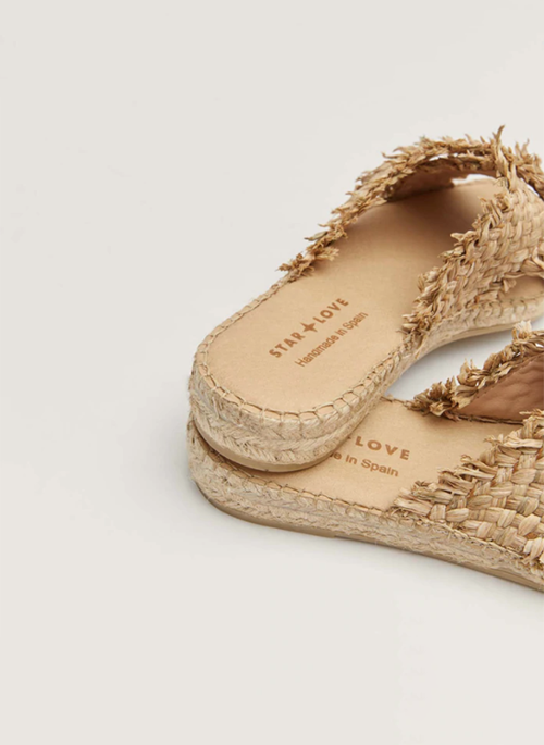 - The combination of its materials such as raffia and esparto grass transports us to summer and to the thousand uses that you can give to this versatile sandal since it combines with absolutely everything.