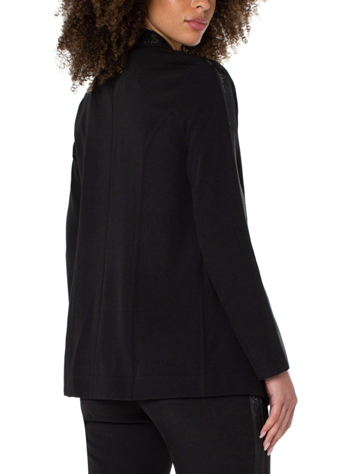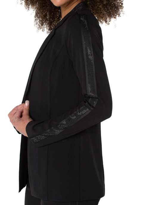 Embellished with a beautiful shimmer stripe our boyfriend blazer is sleek, sophisticated and versatile. Our elevated blazer offers versatility in styling! Make it a chic set with paired with the matching trouser!