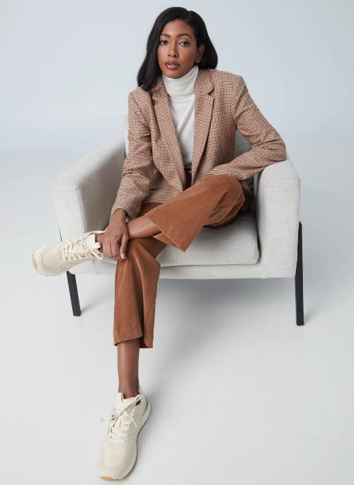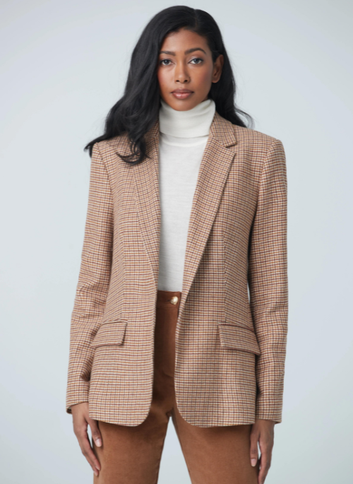 This boyfriend jacket is a must-have in your wardrobe this fall. Create a dressier look with work pants or a more casual look with jeans this jacket is versatile and easily adaptable to any look.