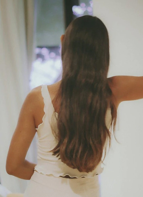 Fitted cropped tank with thick shoulder straps and U-shape front & back necklines. Featuring white exposed lettuce edges on a contouring double knit fabric in a neutral cream color. Pair with the Brigitte Short and/or Pant to complete the set!