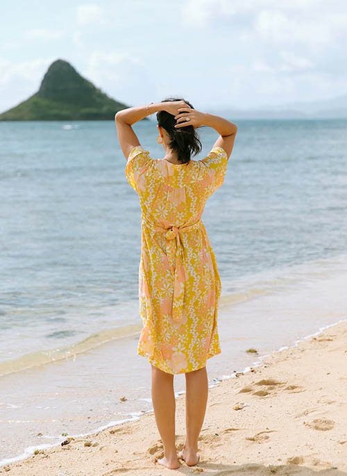 Our best-selling Brynn Dress is back! With a deep v, covered buttons down the front, and back tie, the Brynn creates a beautiful silhouette on any figure. The result is a versatile style that is professional enough for the office, but fun and flirty enough for all of your travels and adventures.