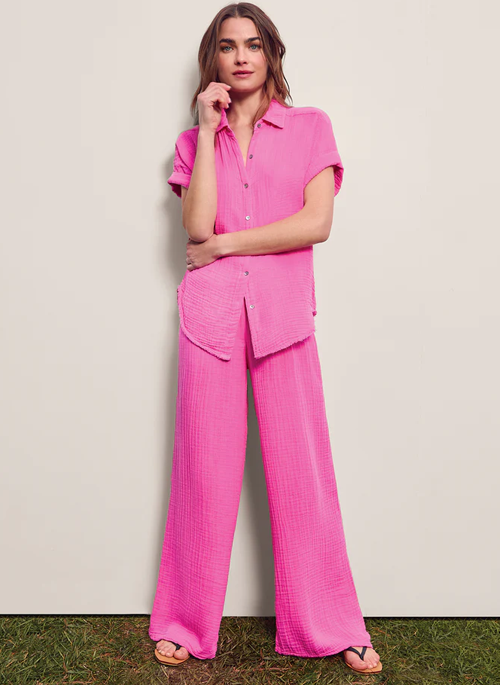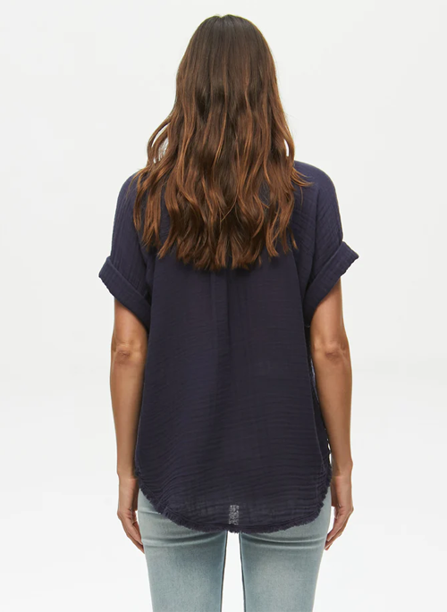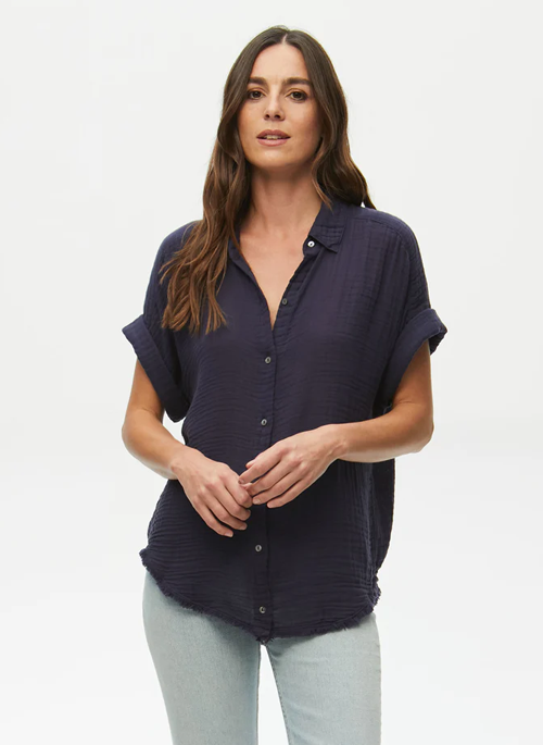 Effortless and light, Bailey has rolled short sleeves, a button up silhouette and a raw-edge hem with an easy fit. Made from our cool and airy double gauze that you'll live in all summer.