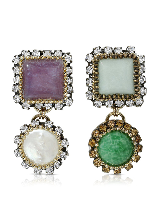 After seeing our Earring And Necklace 3-Tier Set, you’ll understand why we’ve chosen to pair these two items together. The necklace features three tiers of gemstones in various geometrical shapes. All of the gemstones are encrusted in Swarovski crystal, as well as gold Swarovski pearls. They hang from a gold chain, which has an adjustable clamp at the back. The clip-on earrings are secured by a sponge backing. They also display several semi-precious stones in circle and square shapes, which are also encrusted in Swarovski crystal and pearls.
