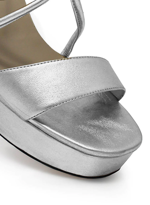 Calipso was created on our iconic triangle heeled platform. Its strap is adjustable to the heel, while a set of tubular leather straps hold the instep perfectly. Designed in a selection of smooth leathers, Calipso is a shoe that everyone will turn to see.
