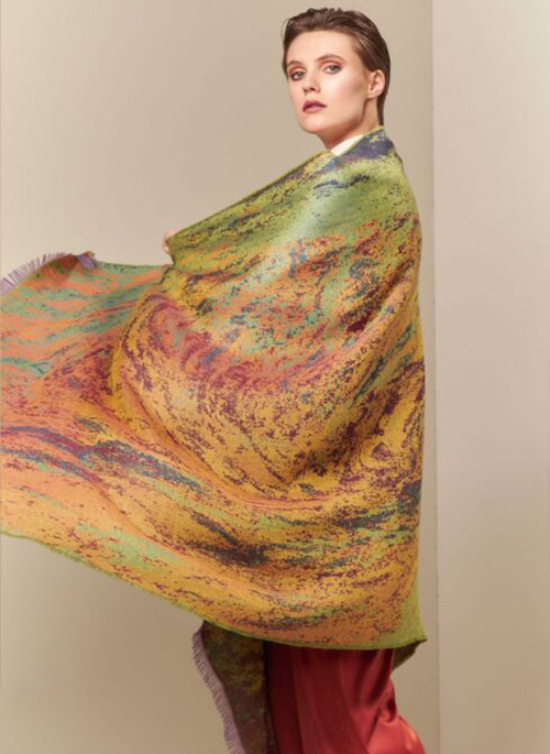 The generous display of vast tonalities proper to nature that characterise our Colours of the World collection, enriches the style of our Caño Cristales reversible shawl, made of royal alpaca and silk. The lavish fabric denotes versatility and elegance and has a fabulous drape that invokes this “river of five colours”, a natural landscape where undulating water runs while projecting a magnificent explosion of colours.