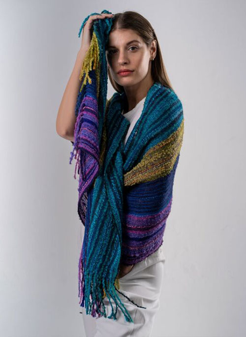 Soft and colorful scarf made of baby alpaca with handmade fringes detail.