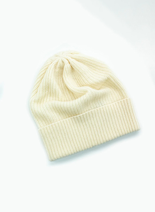Body in all over 1x1 rib stitch with 3inches folded rib cuff.