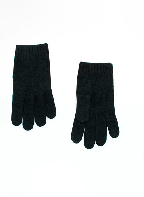 Men's plain jersey gloves with rib cuff. Touch screen gloves with conductive thread embroidery on thumb and index finger. Details: 9" total length One Size Fits Most 100% Cashmere Dry Clean Only