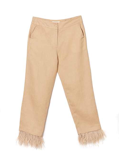 A classic with a twist. The slim-fitting Catalina trousers are tailored in pure linen, and feature side pockets for added utility - the feather lining at the hem gives this piece an unexpected spin.