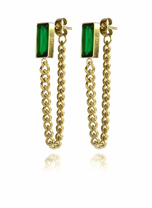 Swooning over this new arrival, the Emerald colored stud is perfect for your spring wardrobe and will add a much needed splash of color to your jewelry collection. The Square shape is modern and perfect! Clasp the stud in your ear so the chain dangles nicely for an edgy yet dainty look.