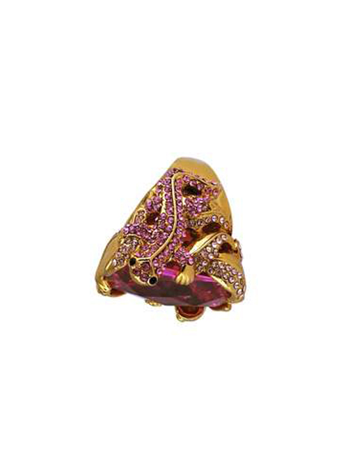 This gold plated statement cocktail square ring is the perfect punch of glamour to any boho chic wardrobe. The oversized green center rhinestone is bezel set, features micro pave' rhinestone chameleons surrounding the setting, and will definitely compliment any outfit. Ring measure 1.5" face length.