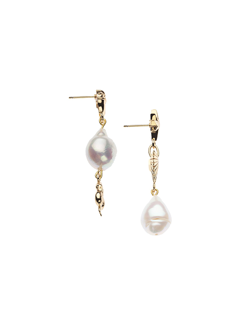 Snakes, hearts, moon, and stars - we love them all. A little protection, a little love, a little guidance, these mix-and-match style earrings take our pendants to the next level with a pop of freshwater pearls. A chic silhouette with a side of fun, one earring features a moon and snake while the matching earring has our signature star paired with a small version of our full-heart.