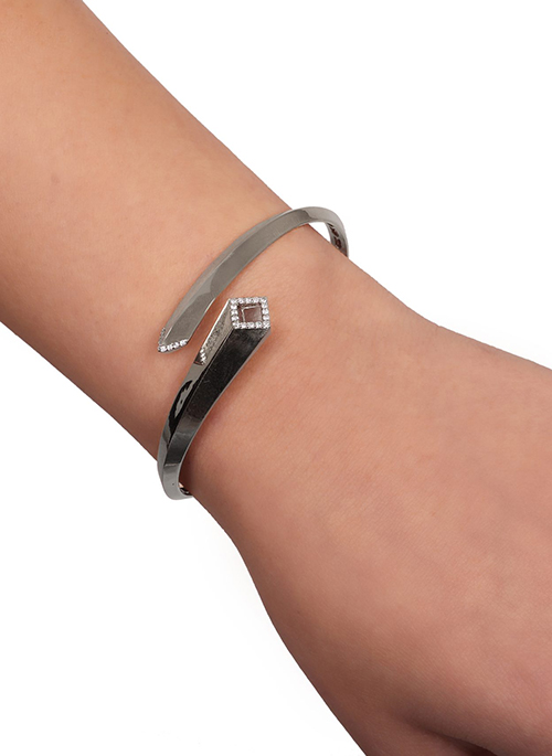 Handcrafted diamond half paved 18K White gold bracelet elegant from our exquisite “Charmer” Collection. Designed to make you feel mystical.