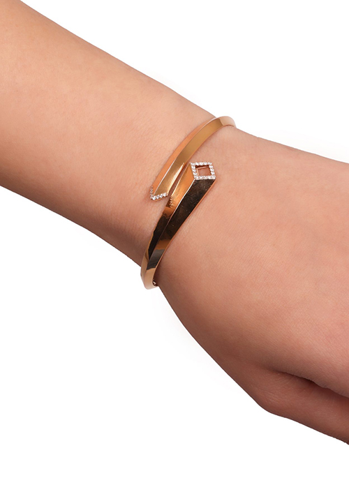 Handcrafted diamond half paved 18K White gold bracelet elegant from our exquisite “Charmer” Collection. Designed to make you feel mystical.