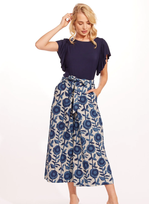 In a blue floral print, these pants deliver a breezy, wide-leg fit that’s essential for warmer days.Details: