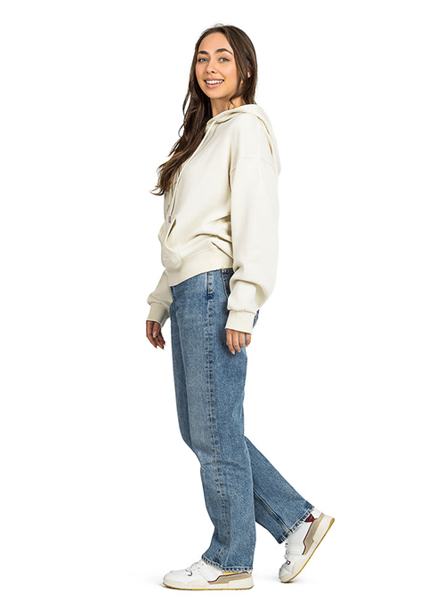 The Chloe pull-over hoodie will be your new go-to. Perfect for on-the-go outfits or lounging around the house. It features an oversize slouchy fit made with the highest quality CVC fleece. We use our signature fabric treatment for added softness and superior colour fastness so that the garment is less prone to colour fading and running. The Chloe features trendy drop shoulders, a kangaroo pocket, and functional drawstrings. Wrap yourself in a cloud of softness all year round!
