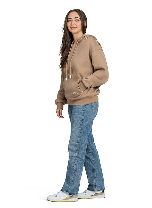 The Chloe pull-over hoodie will be your new go-to. Perfect for on-the-go outfits or lounging around the house. It features an oversize slouchy fit made with the highest quality CVC fleece. We use our signature fabric treatment for added softness and superior colour fastness so that the garment is less prone to colour fading and running. The Chloe features trendy drop shoulders, a kangaroo pocket, and functional drawstrings. Wrap yourself in a cloud of softness all year round!