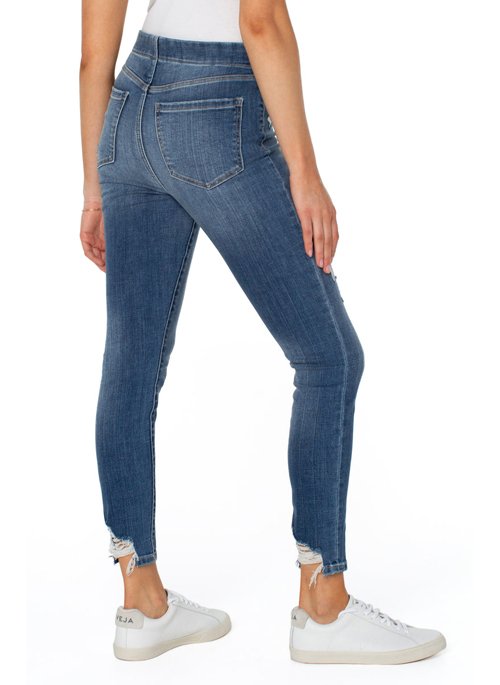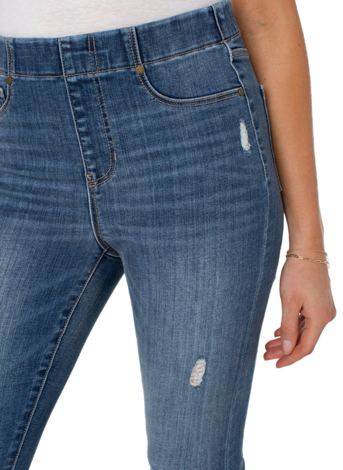 Our signature Chloe Pull-On Skinny in this premium denim offers superb stretch and amazing recovery for all day comfort. This fantastic medium wash with tasteful destruction is versatile, season-less and easy!