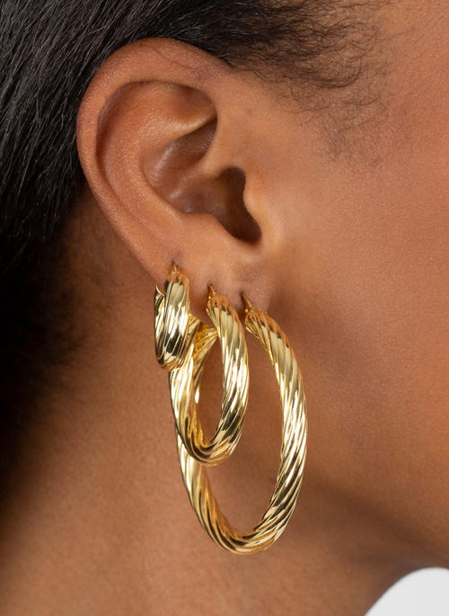 Go radiant and retro with Adina's Chunky Hollow Twisted Hoop Earring, featuring a twist on the classic chunky hoop. Available in three sizes, this beauty has a timeless design that you'll be stacking with everything from chic studs to delightful huggies for a modern yet timeless style .