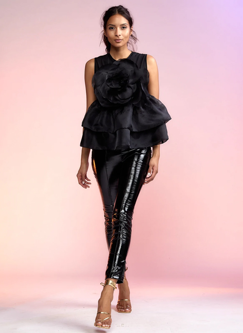 Black patient vegan leather skinny leg pant.