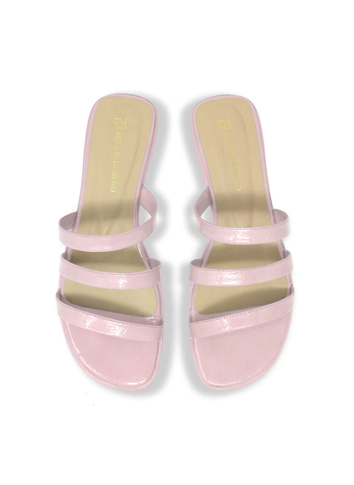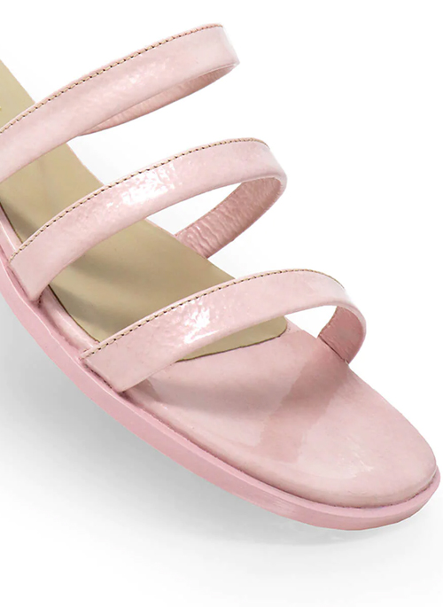 Minimalism at its finest. Our new Cilia flat sandal was created in our seasonal pastel colors, with its sole and padded insole to match. The upper strips of it were meticulously placed to hold the foot perfectly.