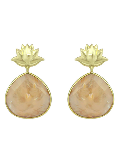 - 18k gold plated drop earring with lotus flower post and semi precious stone drop