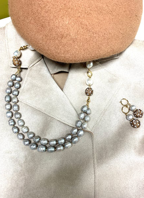 This pair of handmade earrings are made of gray freshwater pearls with rhinestones bordering pearls with Japanese gold plated brass findings. It's classic and timeless which can be worn with a Farra necklace to complete your look.