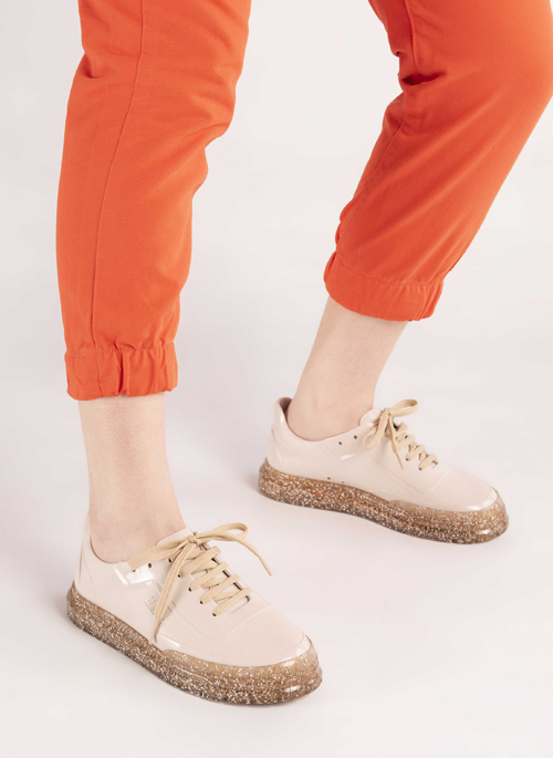 The focus is on designs which combine classic references with comfort and practicality, and the Melissa Classic Sneaker truly reflects this mood. A sneaker inspired by the retro scene, it has a striking design and technology applied in detail so it can be worn for hours. A lightweight Melflex sole and an EVA insole ensure great comfort for everyday use. In addition to comfort, this sneaker screams fashion with contrasting combinations of super trendy colors and the new transparent glitter soles, conveying Melissa's style DNA.