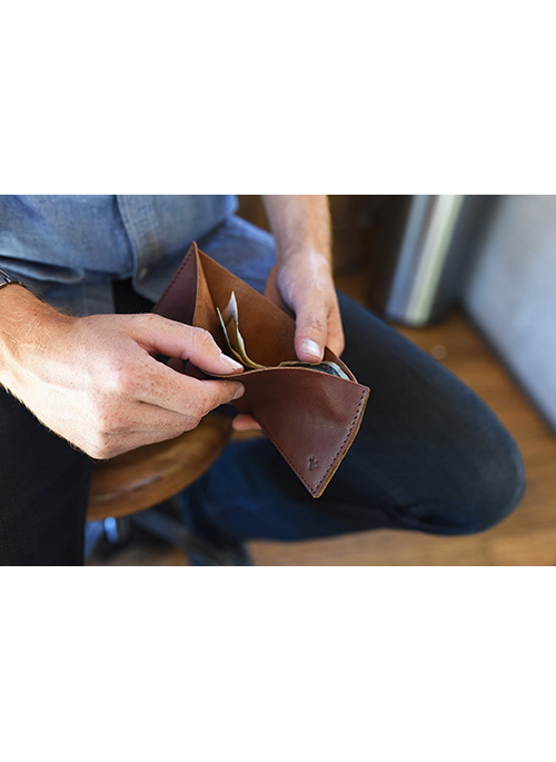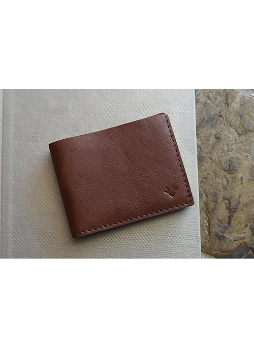 The Classic Twist Wallet updates the classic bill fold, 4-card slot wallet with a modern touch. Made with high quality brown colored leather, this wallet has crisp, straight stitching, and an unfinished bill fold leather interior. The stunning twist is in the subtle arced design of the front card holder to show a little more plastic.