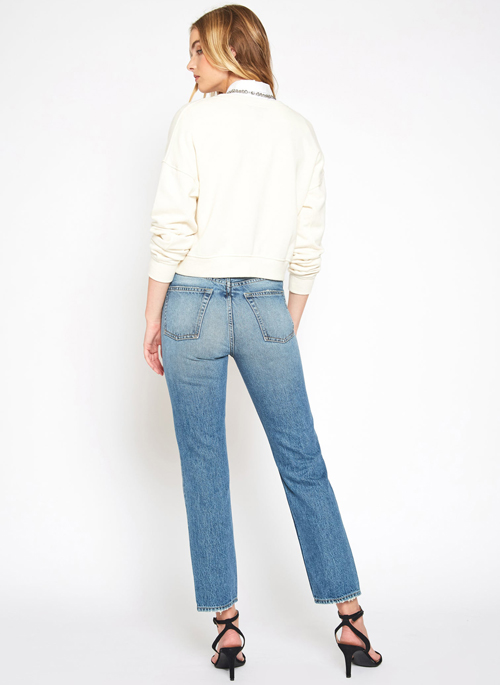 Perfect high rise straight in naturally hand-sanded blue. Sturdy non-stretch cotton denim authenticates these straight-leg jeans that deliver a roomy fit you'll wear all weekend.