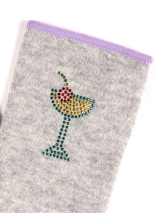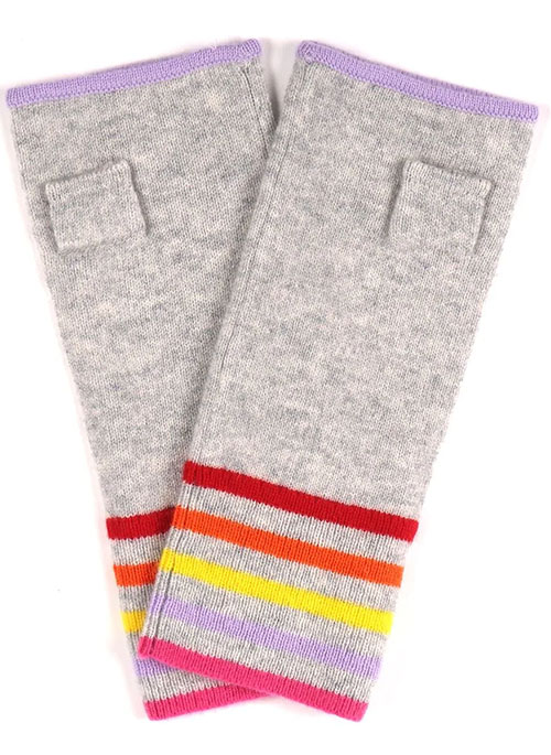 Fingerless mittens with stripped hem, contrast colour tipping and crystals.