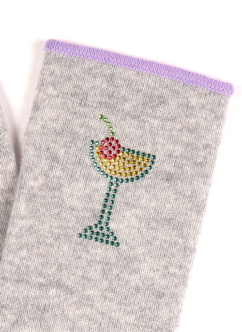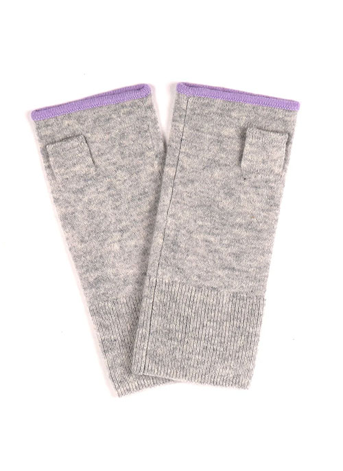 Fingerless mittens with stripped hem, contrast colour tipping and crystals.