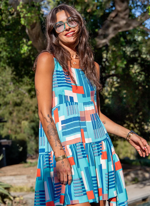 Our Coconinno trapeze dress, an Eva Franco favorite is a breezy sleeveless style that features a ruffled hem.
