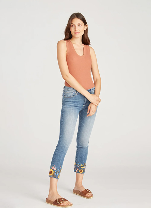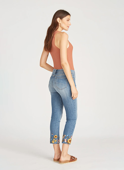 Colette Straight Crop with Sunflower Embroidered Cuff in Light Wash.